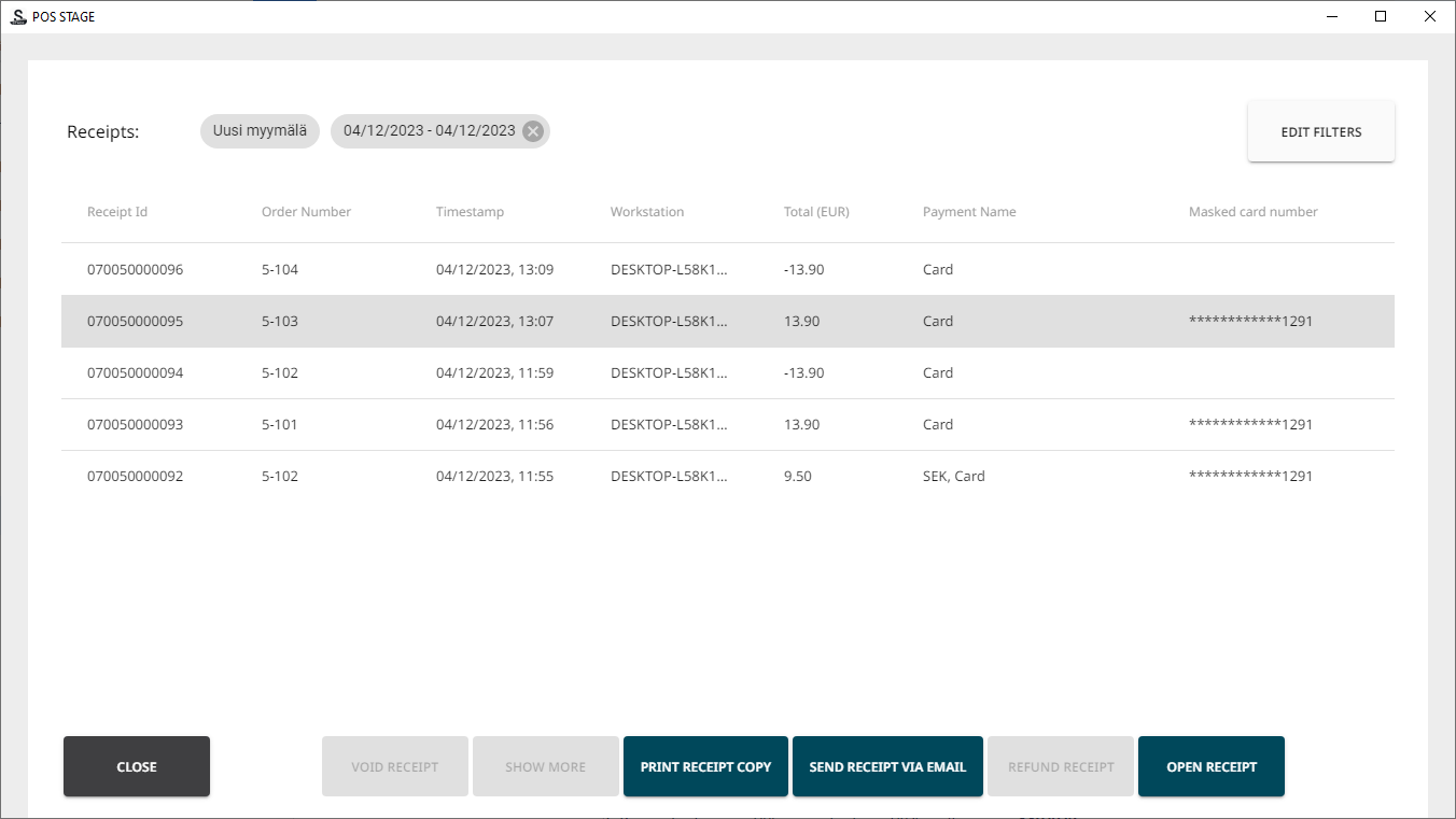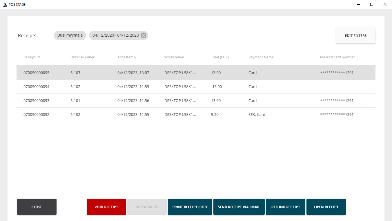 In the POS, find the receipt, by either