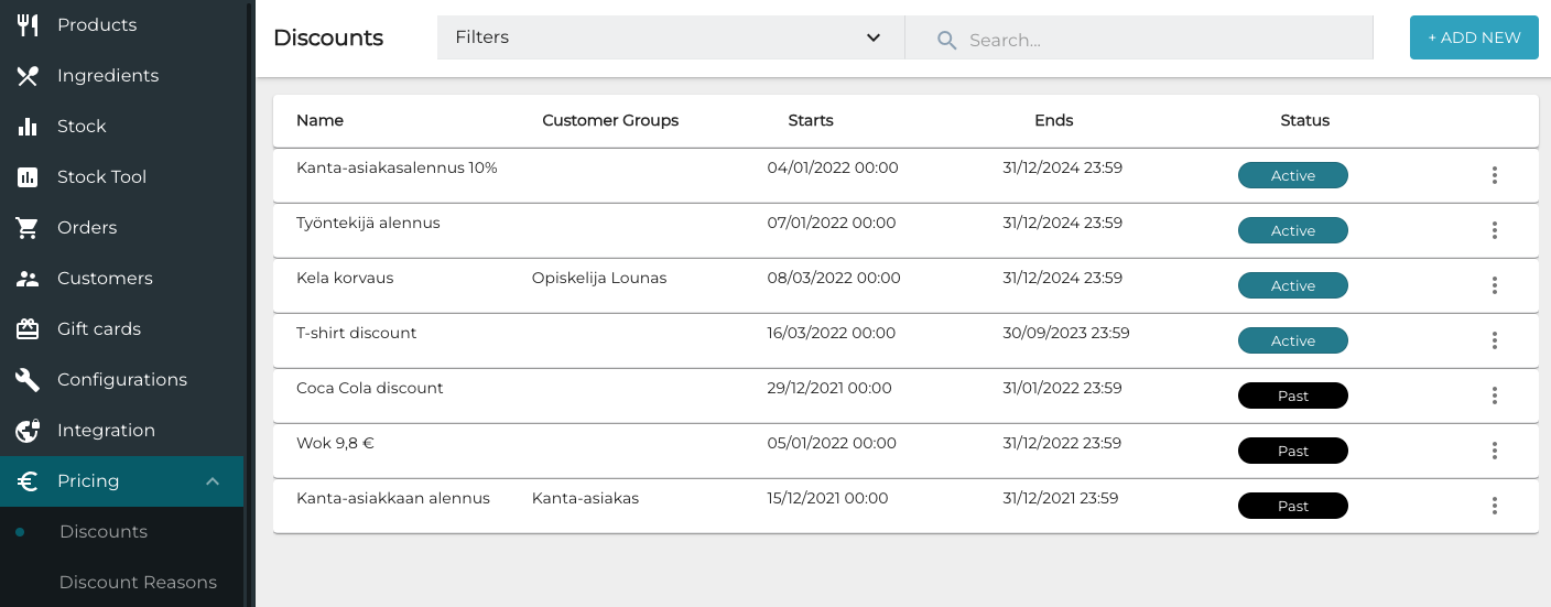 Discount listed in the Discounts view