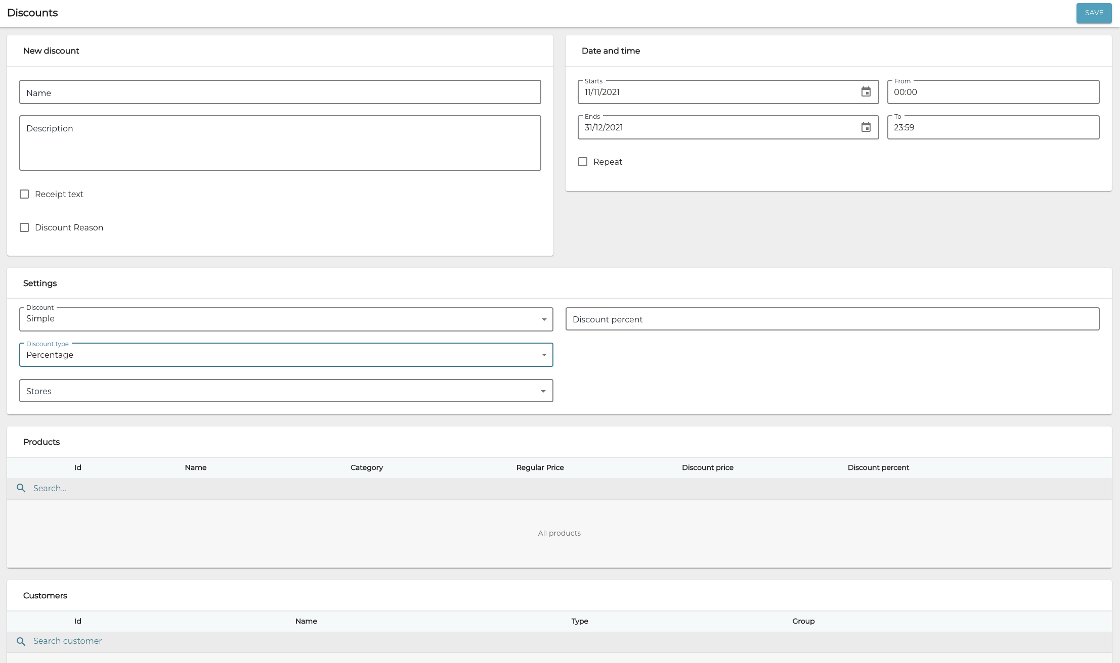 Using a reason code when creating new discounts is strongly recommended, because only discounts with reason codes will be listed in the Discount Report view. Note that you need to create a reason code first to be able to select it from the drop-down menu in step 5.