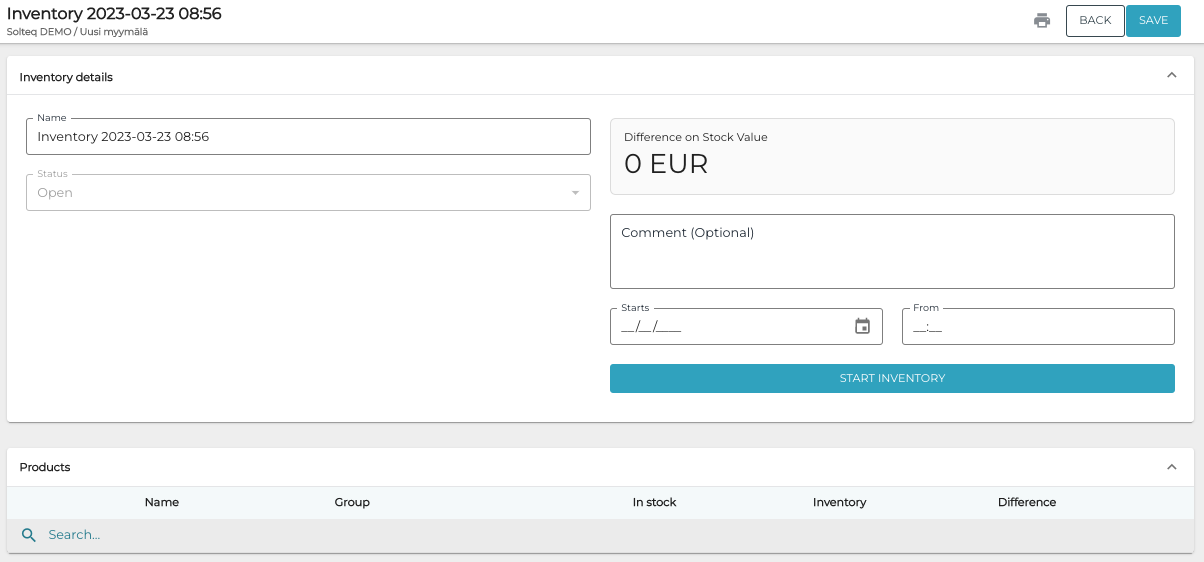 Create the inventory in the Back Office: click +Add new in the Inventory view of the Stock.