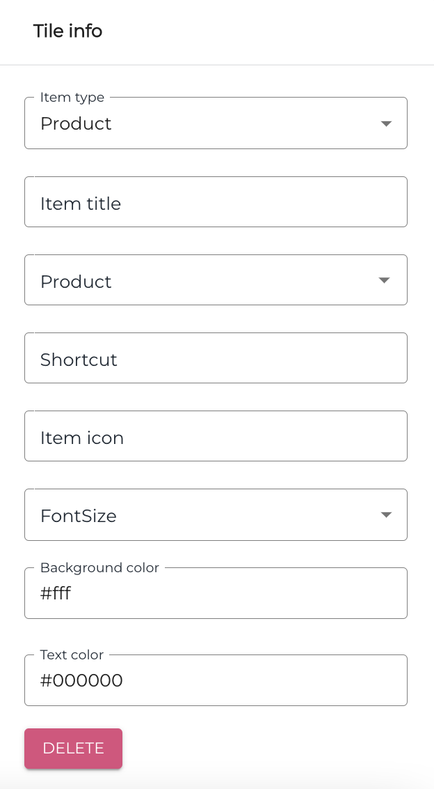 If the selected item type is Url, pressing the tile will open a link (to Back Office main view or POS Layout Designer, for example). Enter the link in the Item Url field.