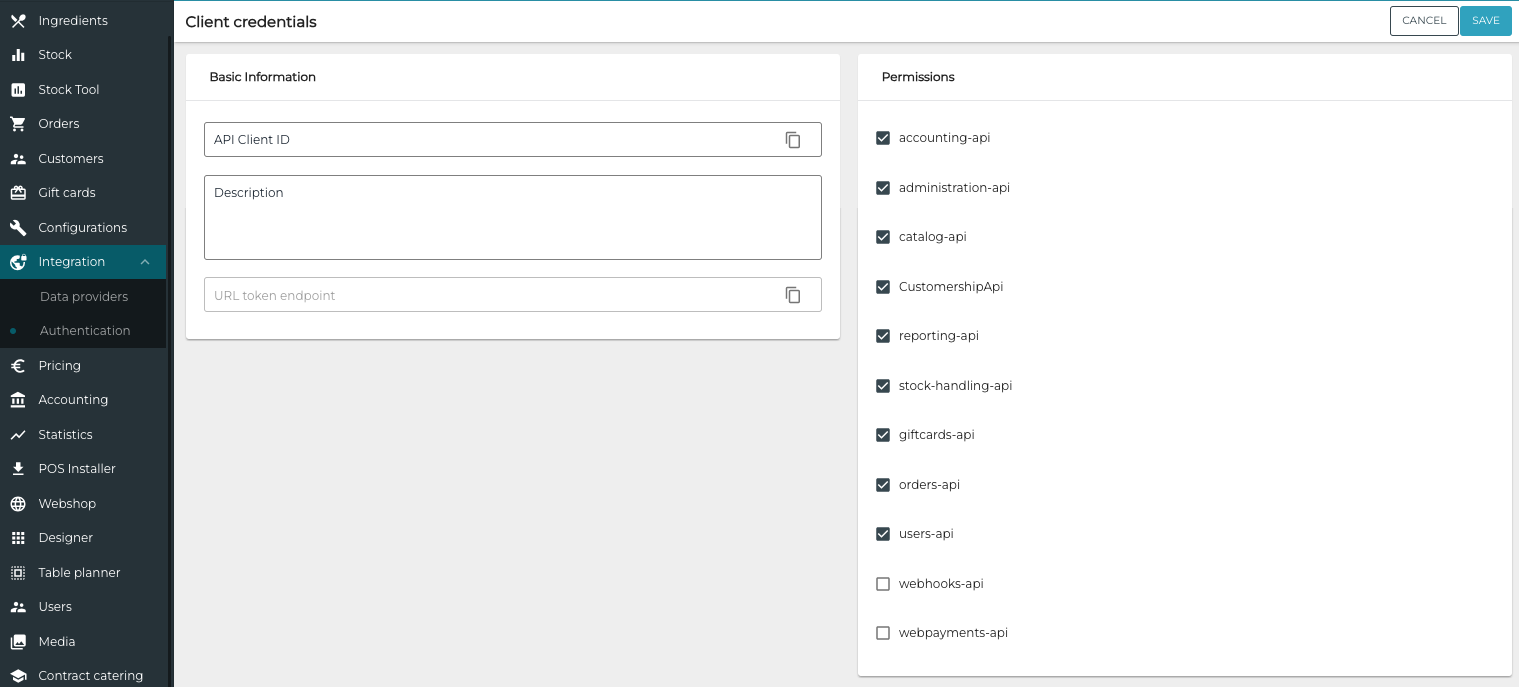 Next, add new client credential in the Authentication settings of the Back Office:
