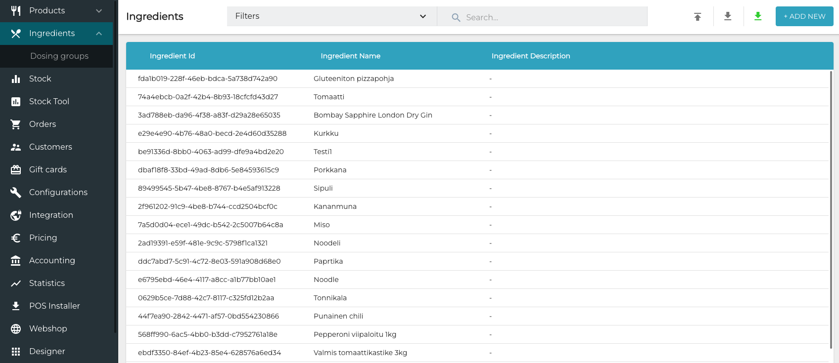 Ingredients are used in creating custom products, and have effect on both how the product is created as well as the price of the product. A custom product can have a number of ingredients in the form of pre-defined doses as a default; it is also possible to provide options to add and remove some ingredients. This way users can customize the product in the POS or self-service kiosk by selecting from the available options. The ingredients included in the order will be printed in the Kitchen, so that the kitchen staff will have exact information on how to prepare the food.