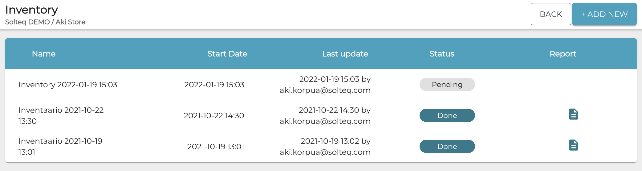 You can download the inventory report in Excel format by clicking the Report icon on the row of the inventory.