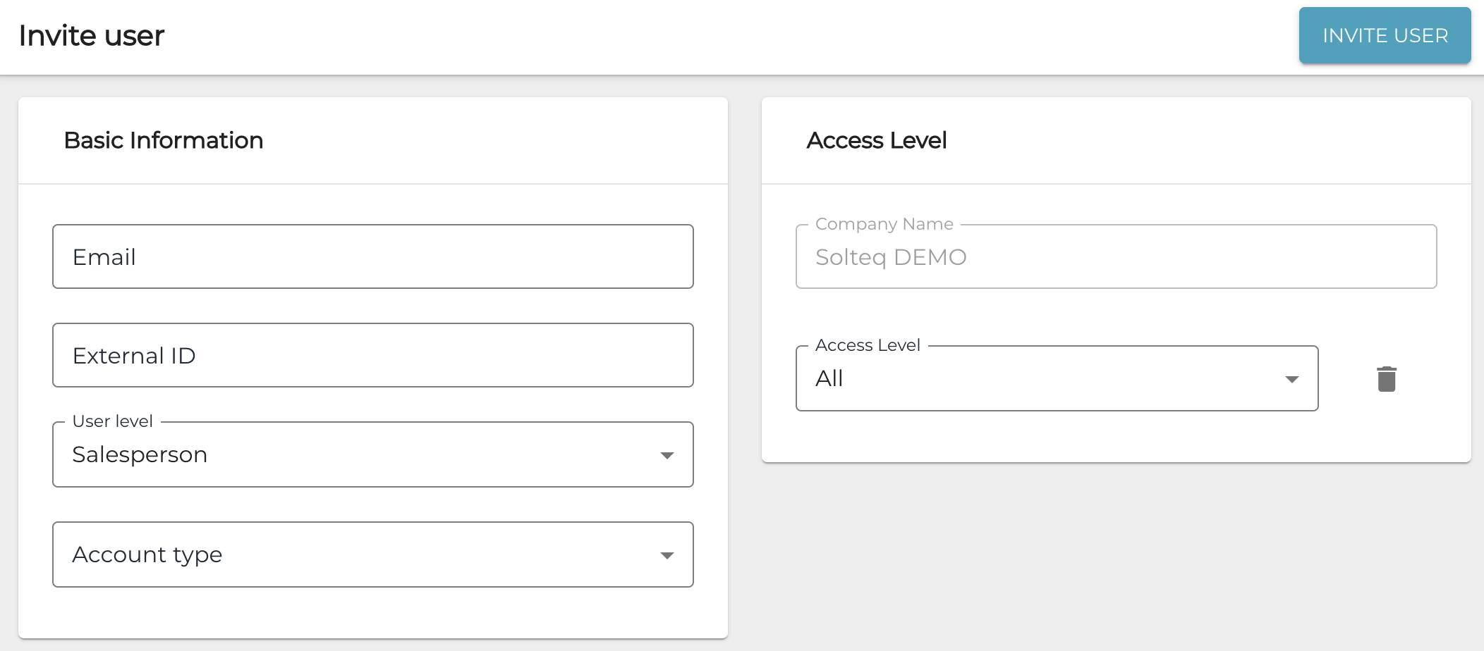 3. In the Invite user view, enter Basic Information for the user you want to invite: