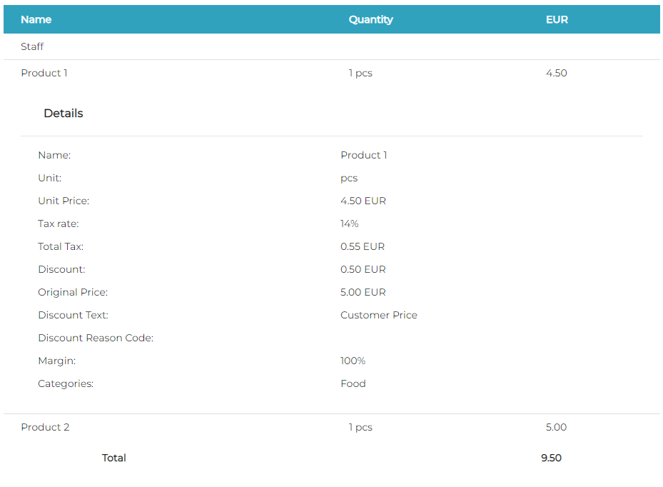 Since there are no products defined in the example above, the discount will be applied to all products by default. However, the discount will not be applied to those products (Product 2 in the example below) whose category defines that their maximum discount is 0%.