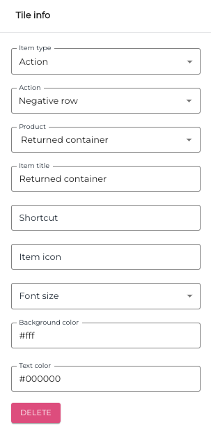 Add a Negative Row action tile to POS Layout, and select the open product you created to the Product field of the tile.