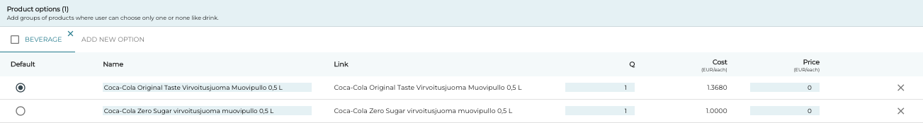 Cost: Cost of the product option, based on the purchase price of the product.