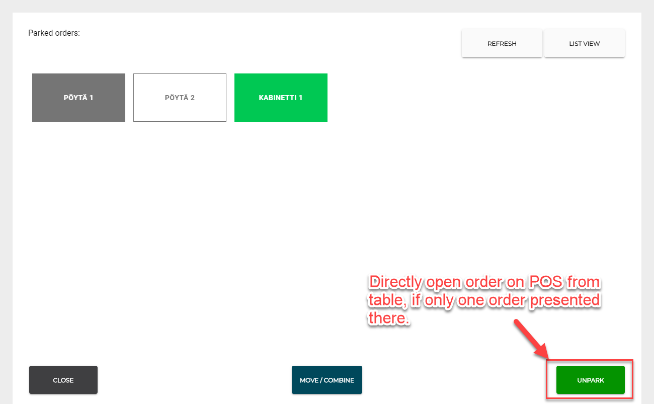 Whenever a table which has only one parked order is selected, the order is now displayed directly in POS.