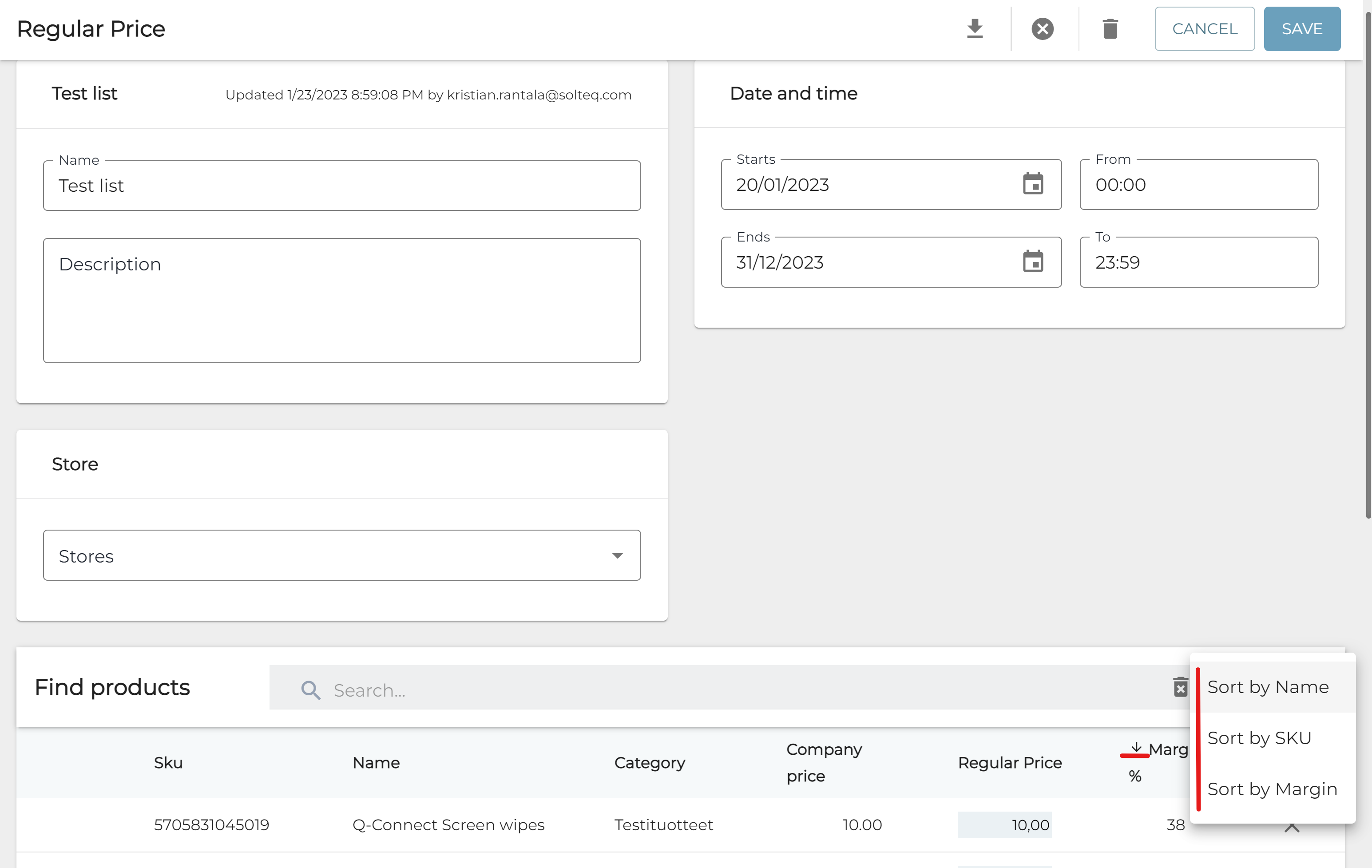 This release introduces several improvements to the Pricing features of Solteq Commerce Cloud. The new features enable users to make mass edits to price lists.