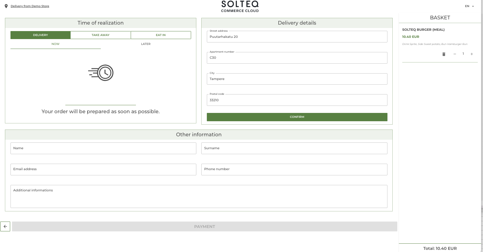Paytrail v3 is now supported in Solteq Commerce Cloud. For more information, see Payments.
