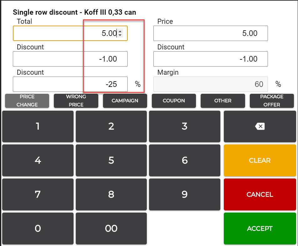 Before when campaign price was higher than store price, the price was still calculated based on campaign price. For example, staff discount of 15% calculated the discount based on the company price, not from store price; this meant that when company price was 1.50€ and store price was 1.00€, customer with discount was actually paying 1.28€ instead of 0.85.