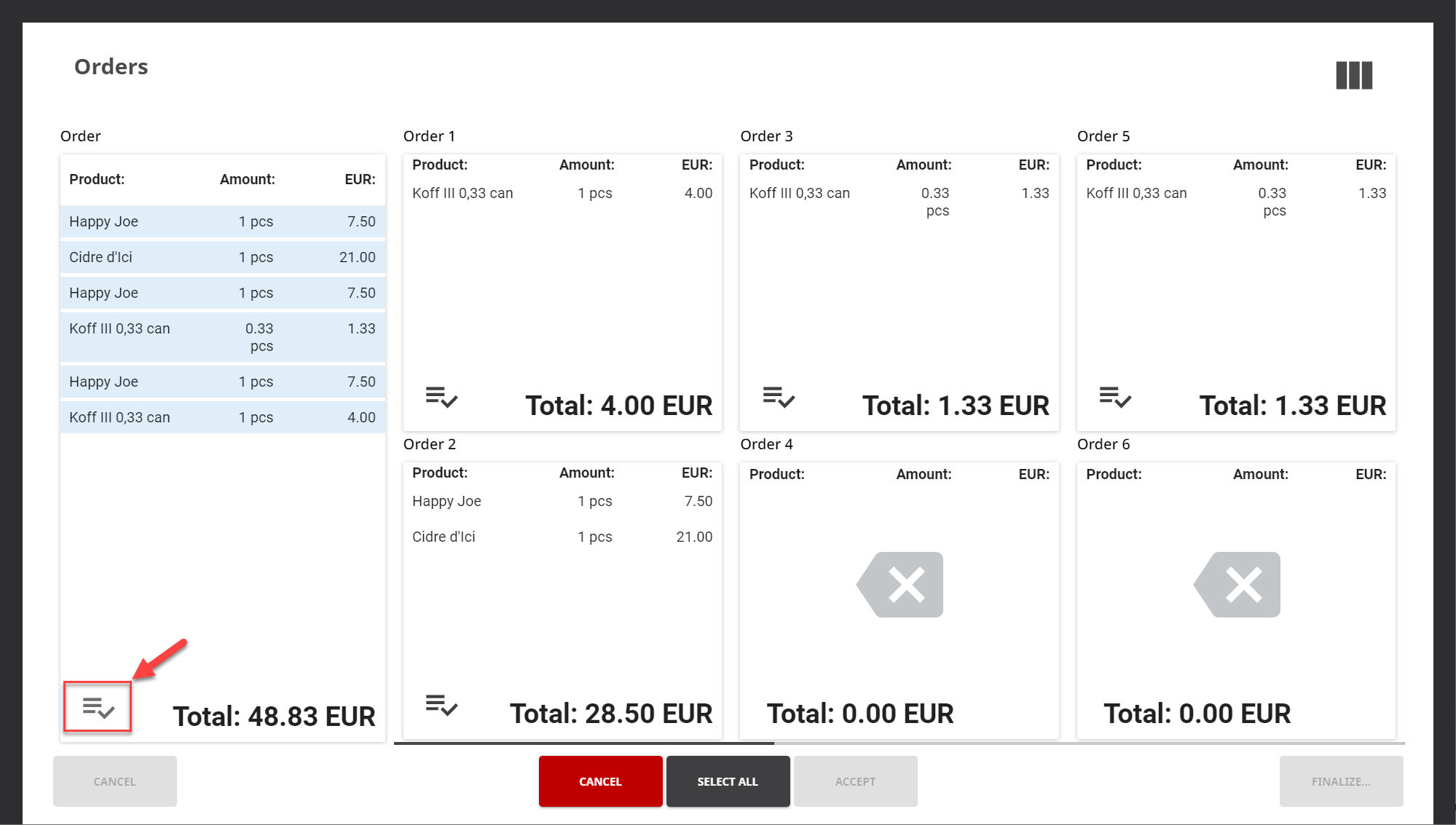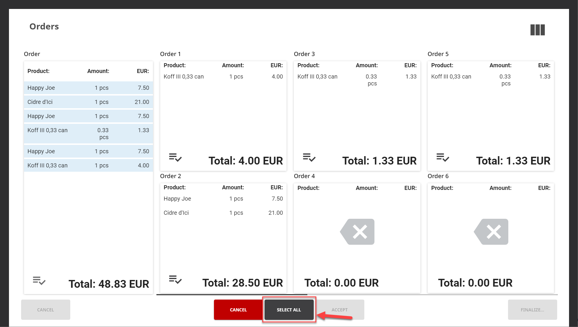 Select All and Deselect All buttons have been added for selecting/deselecting all products from an order.
