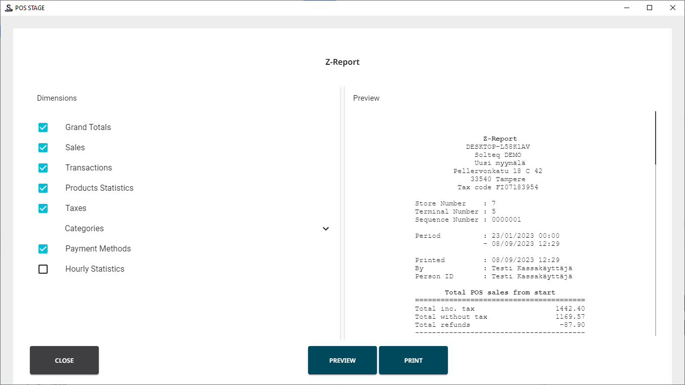 Z-report is an end-of-day report, usually generated when daily cash is settled. Generating the Z-report is not mandatory, because the data will also be transferred to Back Office without it.
