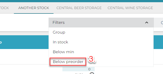 Select the Below preorder filter from the Filters drop-down menu, and click Apply filters. The filter enables you to restock your selected stock as close to MAX value as possible.