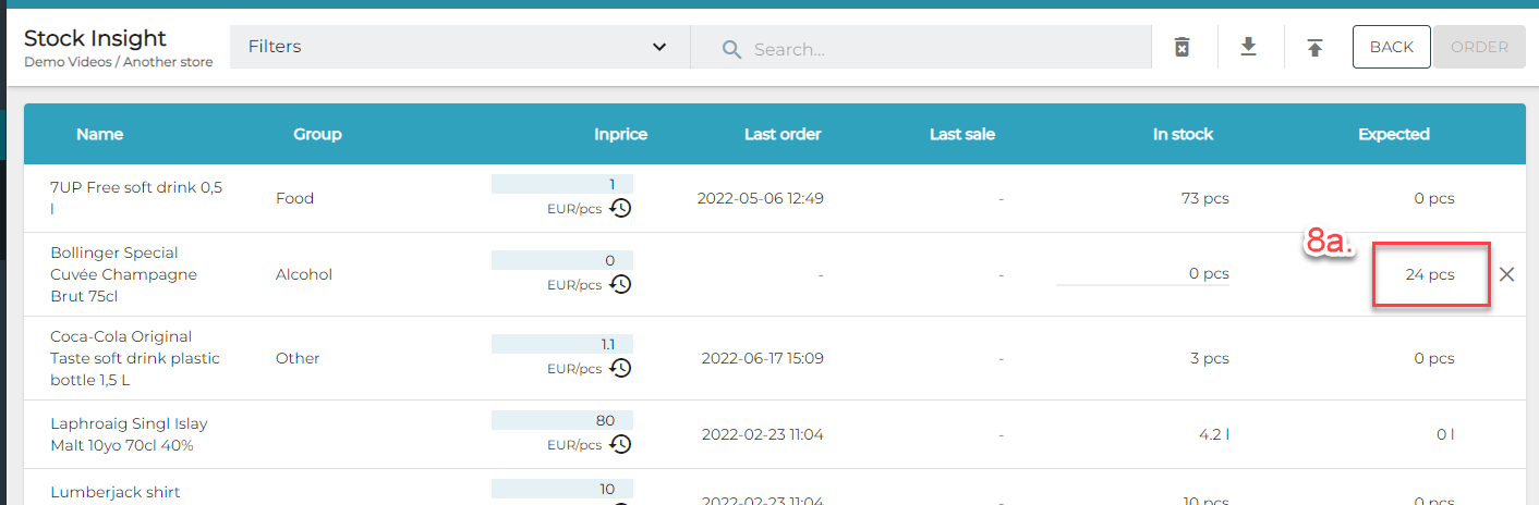 Now the stock items that need to be transferred are displayed Stock Insight. Click Order.