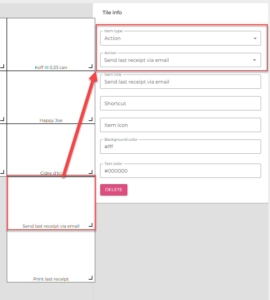 Adding an Send last receipt via email tile to POS layout