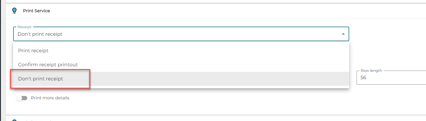 Using the following settings is recommended in order to print out only the receipts that need to be printed.