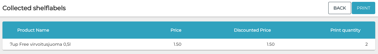 As seen in the example image above, individual products will be collected under one shelf label set (with your e-mail as the name of the set) with Created status. When the set is printed or canceled, a new list will be created the next time you collect individual product labels for printing.