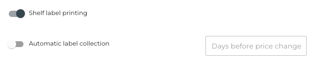 To enable shelf label printing, click the Shelf label printing switch to ON in Company Configurations.