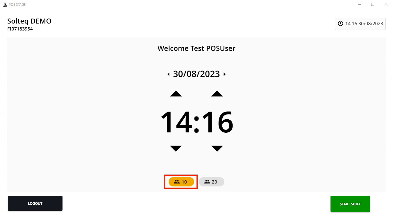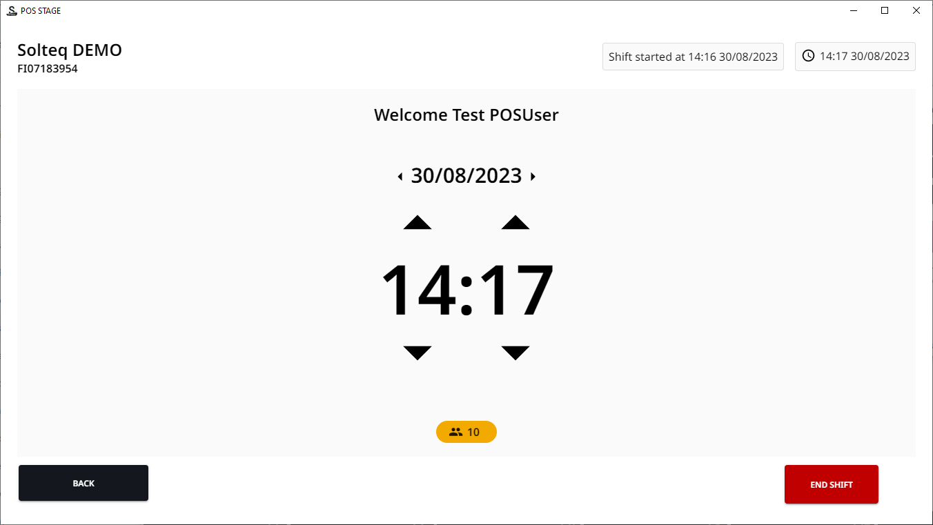 The shift starts automatically on the first login to POS. After the shift has been started, the POS opens normally.