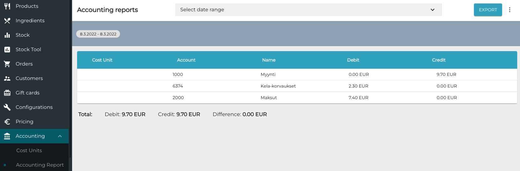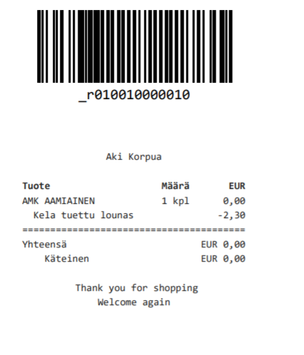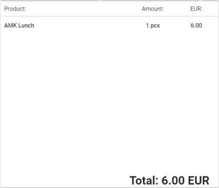 Create the needed meal products, for instance: AMK Aamiainen 2.30€ (for breakfast) ja AMK Lounas 5.00€ (for lunch).