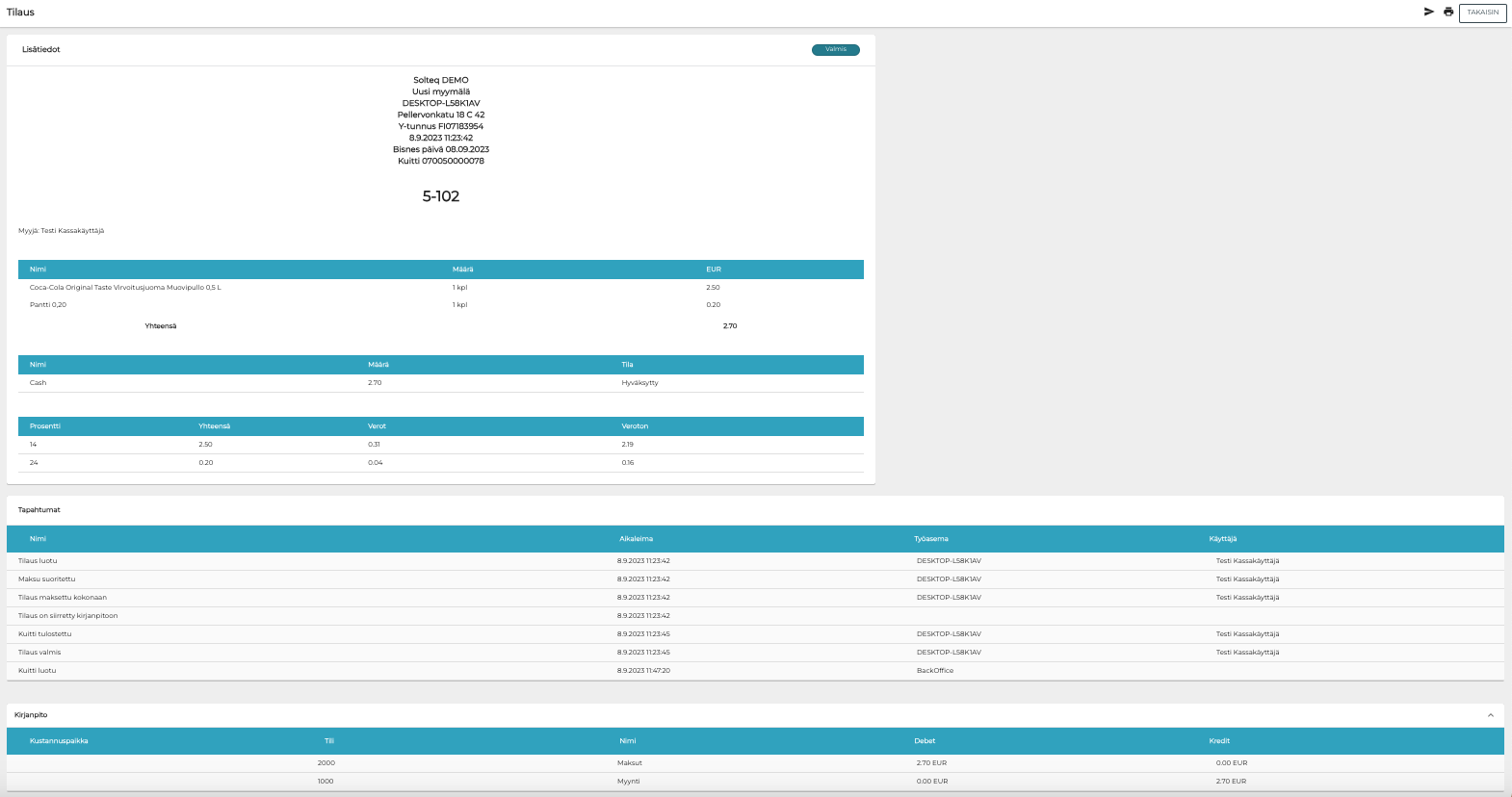 ![]() | tilaus on maksettu ja kuitti on luotu (riippumatta tilauksen tilasta) | Tulostaa kuitista kopion. |
