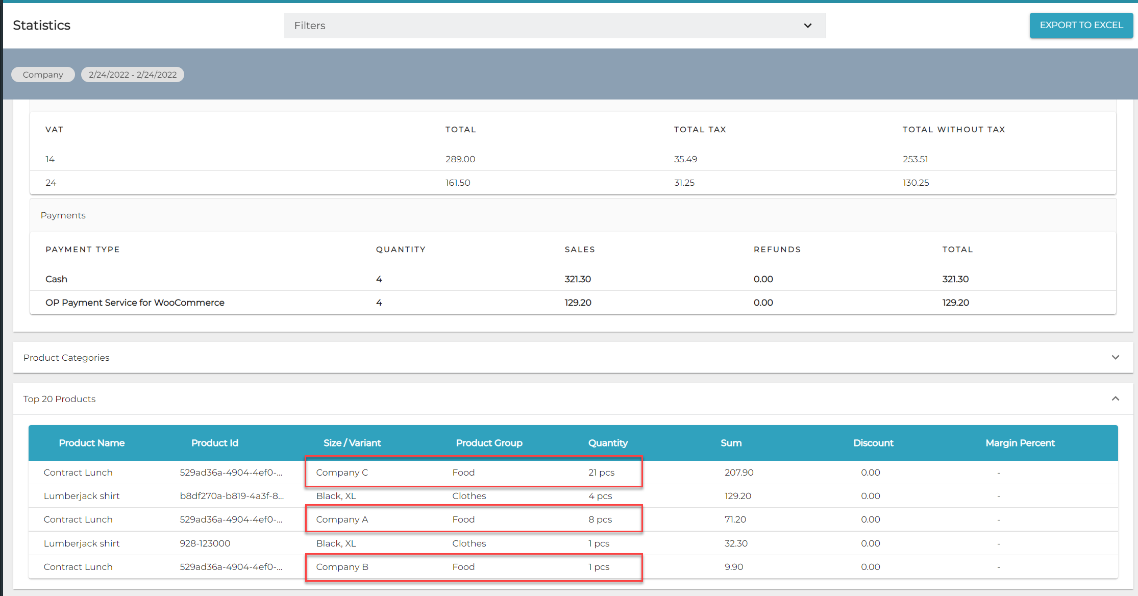 Kun asiakas tunnistetaan kassalla, Sopimuslounas-tuote voidaan lisätä ostoskoriin, jolloin myyjä valitsee oikean koon (=yrityksen) sille.