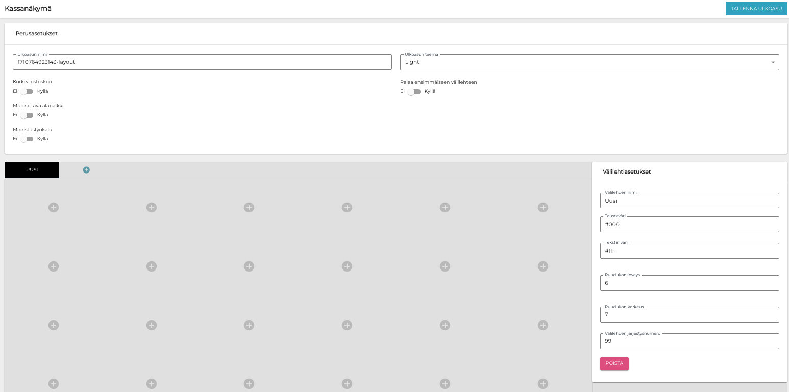 Klikkaa taustapalvelun valikosta Suunnittelutyökalu. Kassanäkymä -välilehti avautuu.