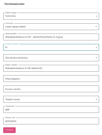 Esimerkki kassalle lisättävästä ikärajatarkastukseen liittyvästä toimintopainikkeesta