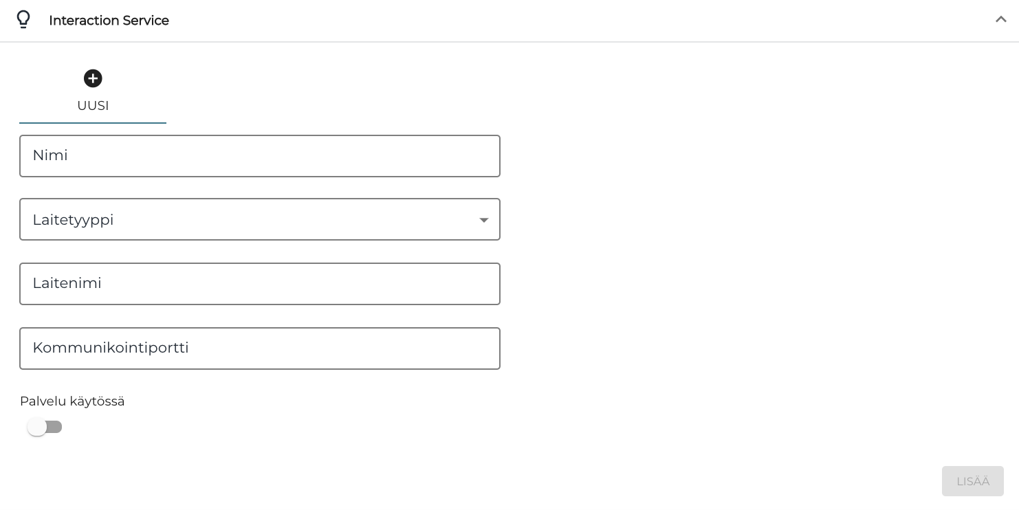 Interaction Service -asetukset