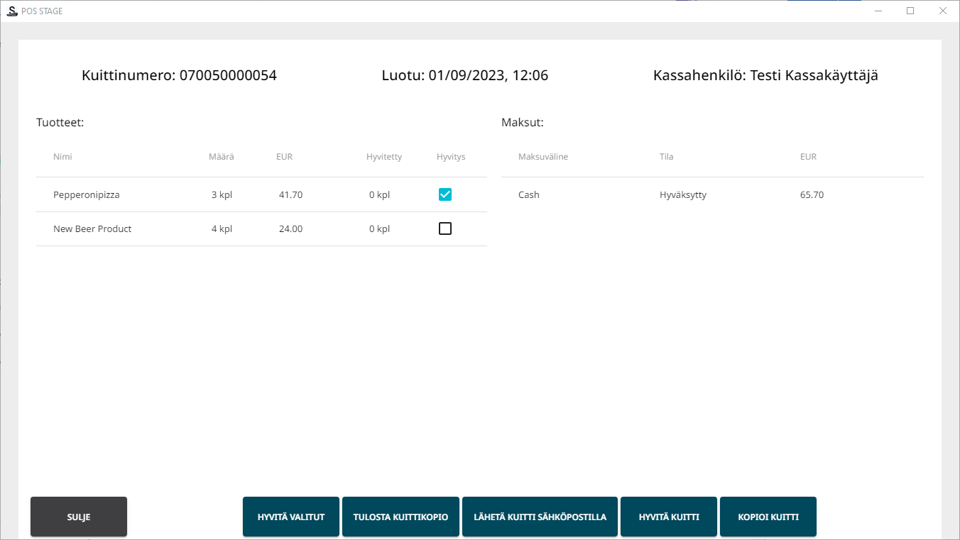 Kuitin tuotteiden valitseminen hyvitettäväksi