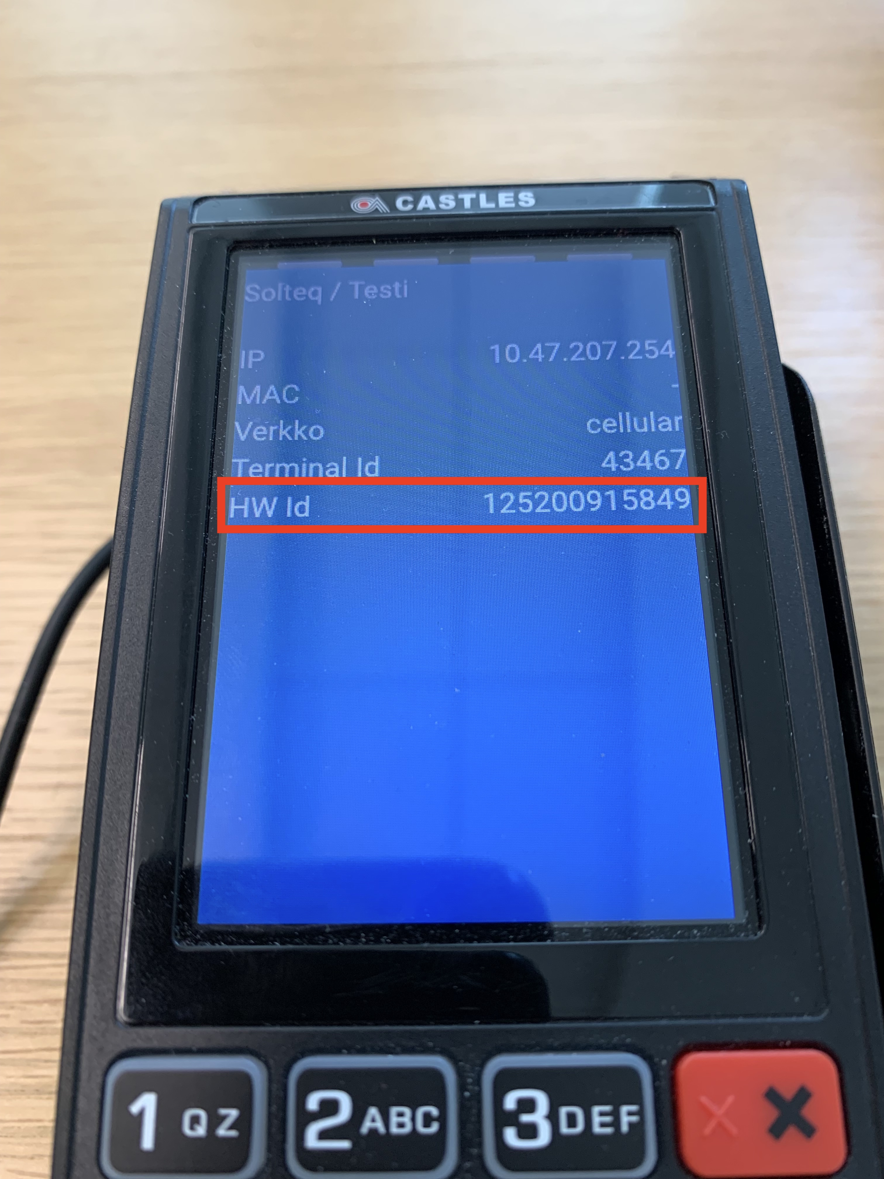 HW ID-tunnus maksupäätteen asetuksissa