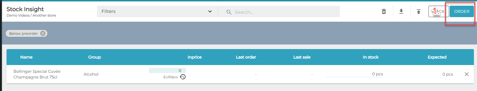 Käytä tätä listausta varaston täydentämiseen ennakoivasti.
