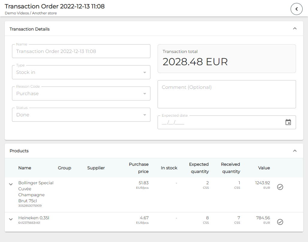 Tallenna tilaus klikkaamalla Tallenna. Kun tuotteet saapuvat toimittajalta, saapuneet määrät voidaan normaalisti hyväksyä/muuttaa.
