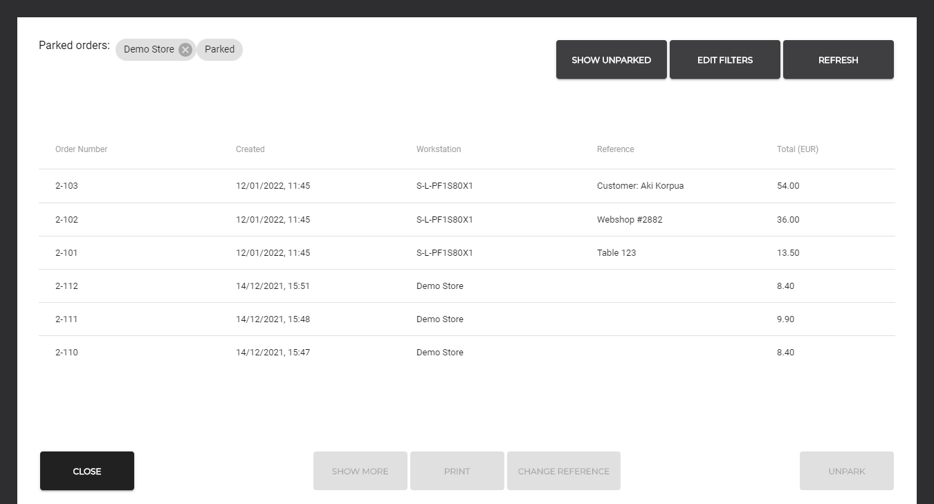 ZZ on kaksinumeroinen myymälän numero (storeNumber), joka alkaa nollilla. Järjestelmä hakee numeron myymälän asetuksista.
