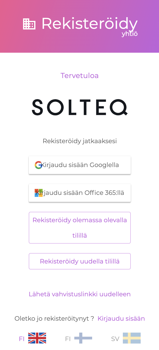 kirjaudu sisään Google-, Office 365- tai Solteq Commerce Cloud -tilillesi