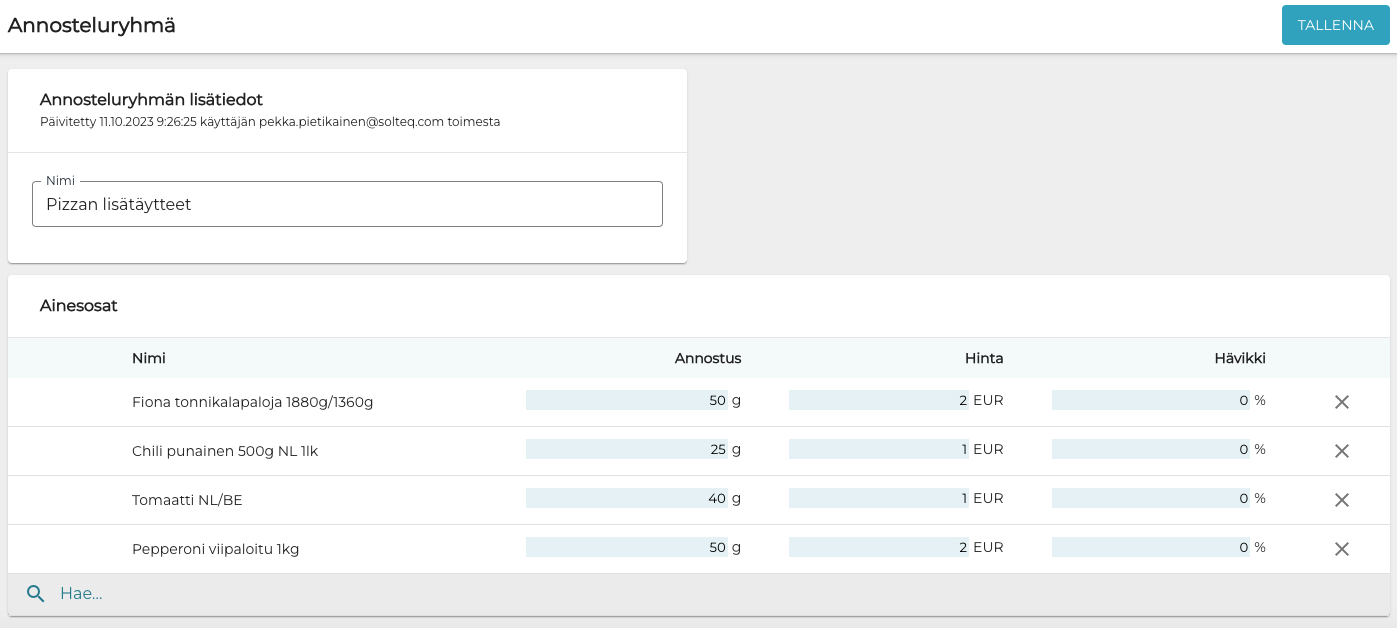 Annosteluryhmän tiedot