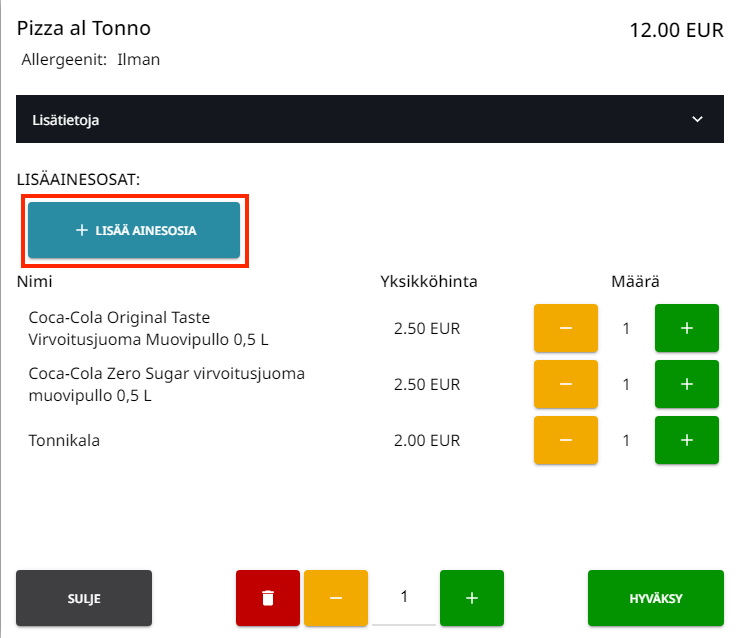 Lisää ainesosa -painike