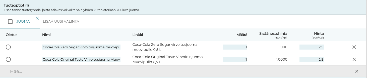 Tuoteoptiot