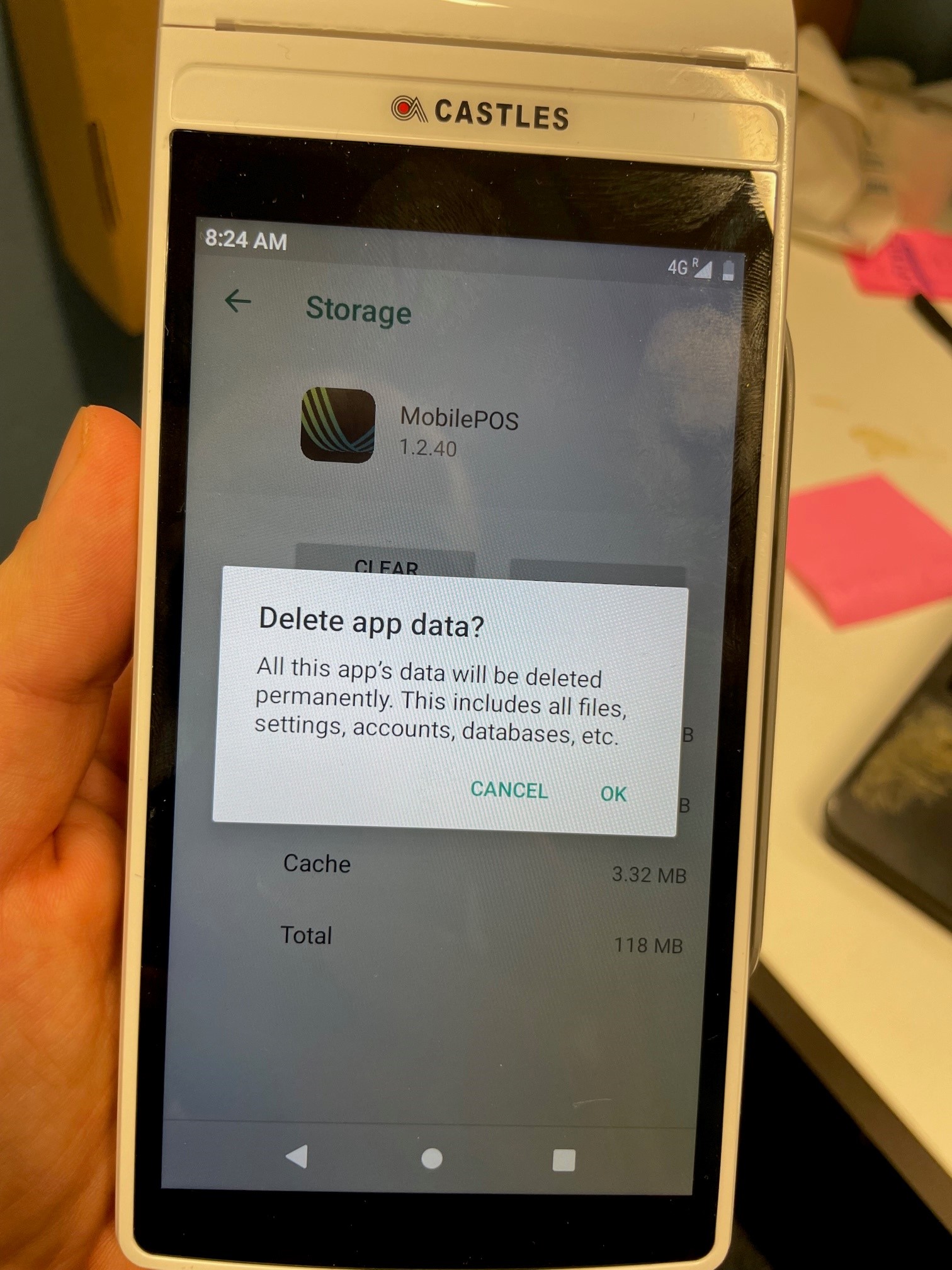 Paina OK poistaaksesi sovelluksen tiedot.