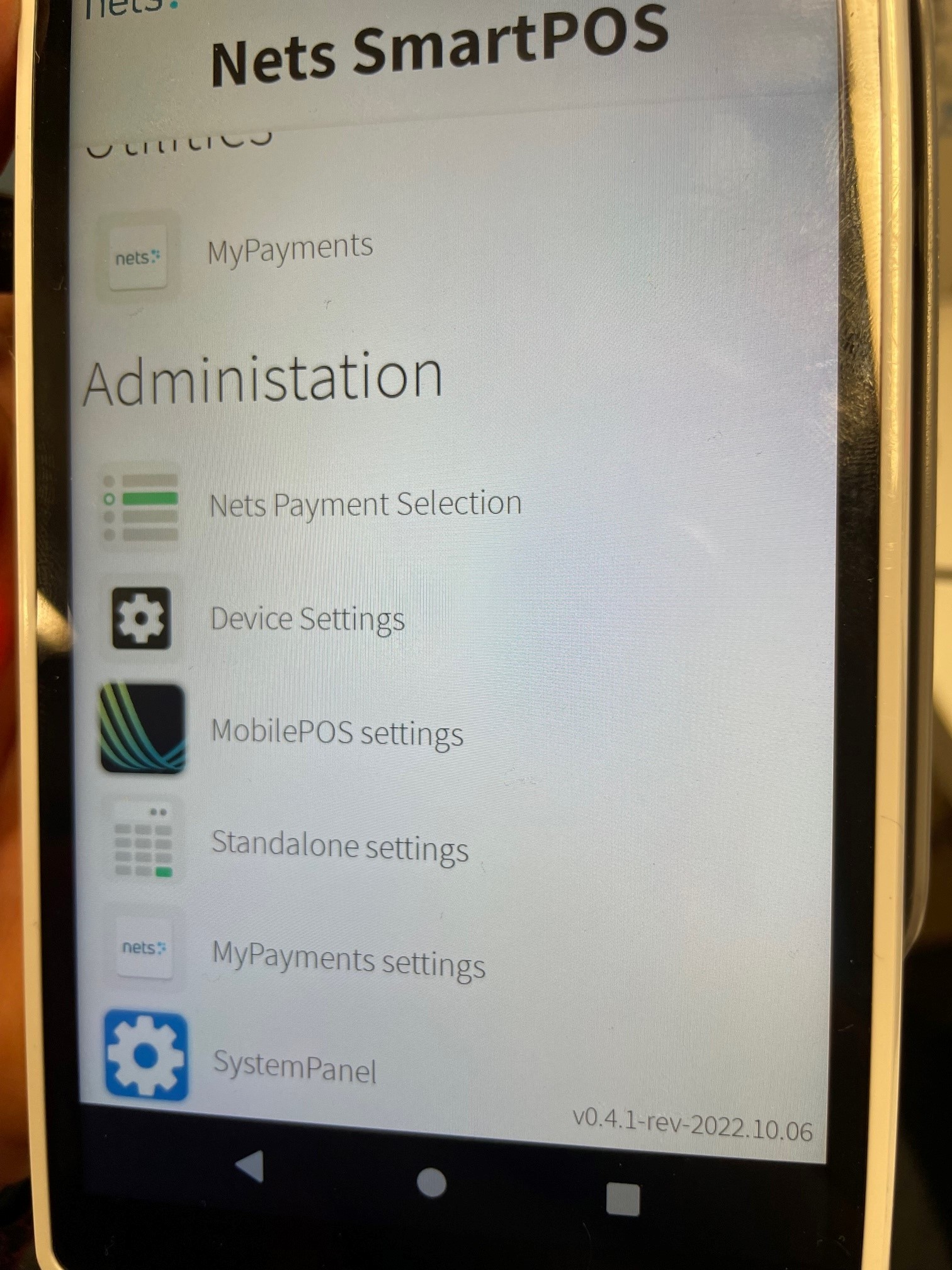 Mene kohtaan Administration ja paina MobilePOS settings.