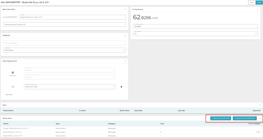Ainesosat ja myyntituotteet voidaan luoda uudessa versiossa suoraan varastosta. Varastossa näytetään myös kaikki jo olemassa olevat ainesosat ja myyntituotteet, jotka on linkitetty kyseiseen varastotuotteeseen.