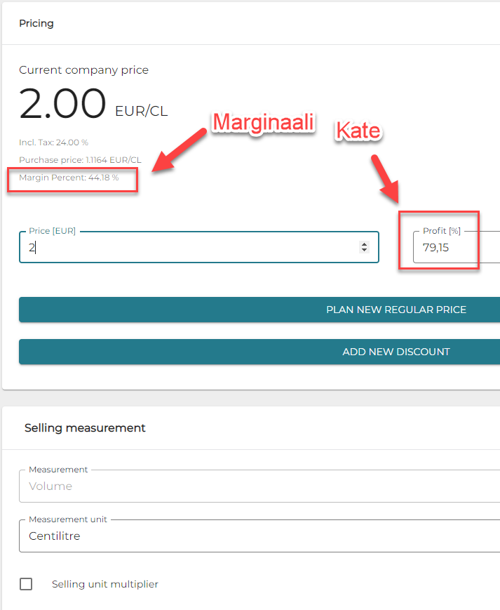 Ostohinnan näkyminen myyntituotteella sekä hinnoittelutyökalu