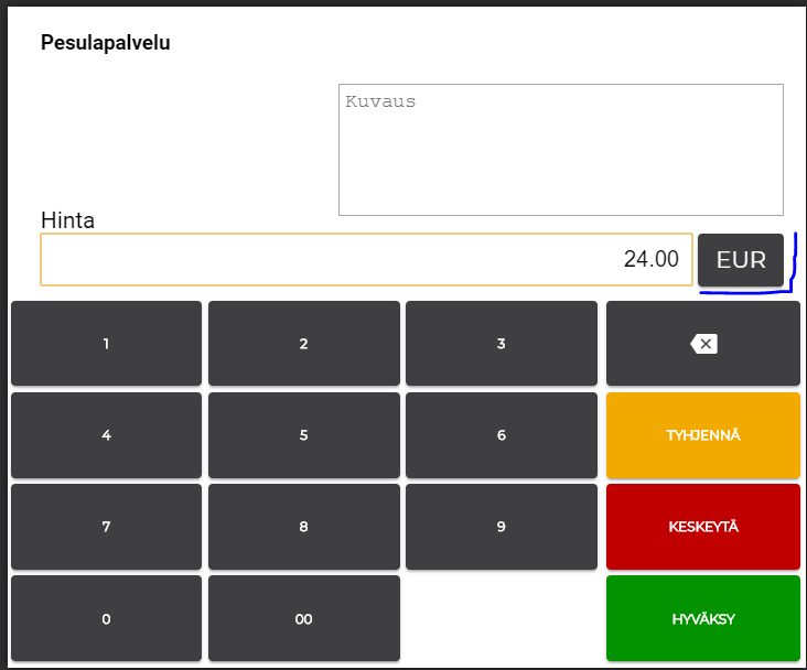 Maksun summan syöttämisessä voidaan käyttää näppäimistön numeronäppäimiä
