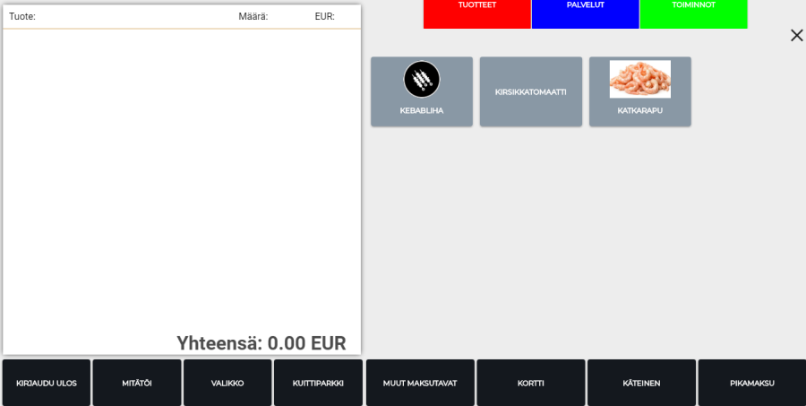 Kassalla maksuvälinerajoitus näkyy käyttäjälle siten, että vain sallittuja maksuvälineitä voi käyttää, mikäli ostoskorissa on tuote, jolla on kiellettyjä maksuvälineitä. Kielletyt maksuvälineet näkyvät kassaohjelmassa vaaleammalla värillä.
