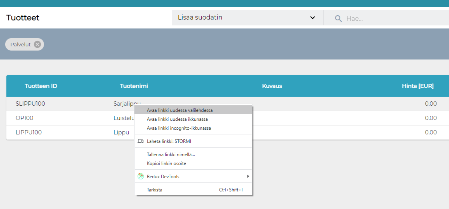 Taustapalvelussa on nyt mahdollista avata linkkejä toiseen välilehteen. Tämä tapahtuu klikkaamalla esim. hakutuloksen riviä oikealla hiiren napilla ja valitsemalla "Avaa toisessa välilehdessä" tai käyttämällä hiiren keskimmäistä nappia.