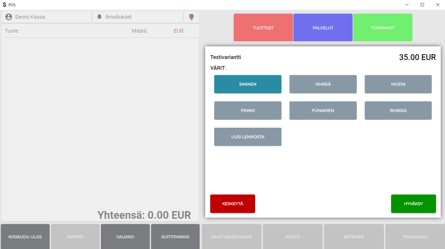 Myös kassaohjelmaan on tuotu muutoksia tämän suhteen. Myytäessä esimerkiksi variantti- tai pakettituotteita,