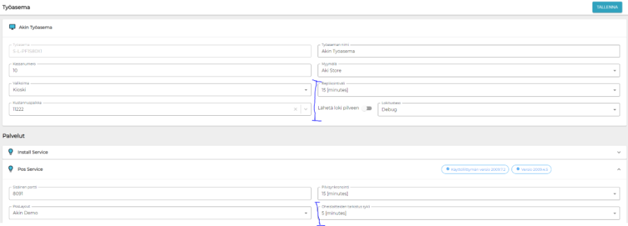 Taustapalveluun on maksupäätteenä käyttöä varten tehtävä seuraavat konfiguraatiot: