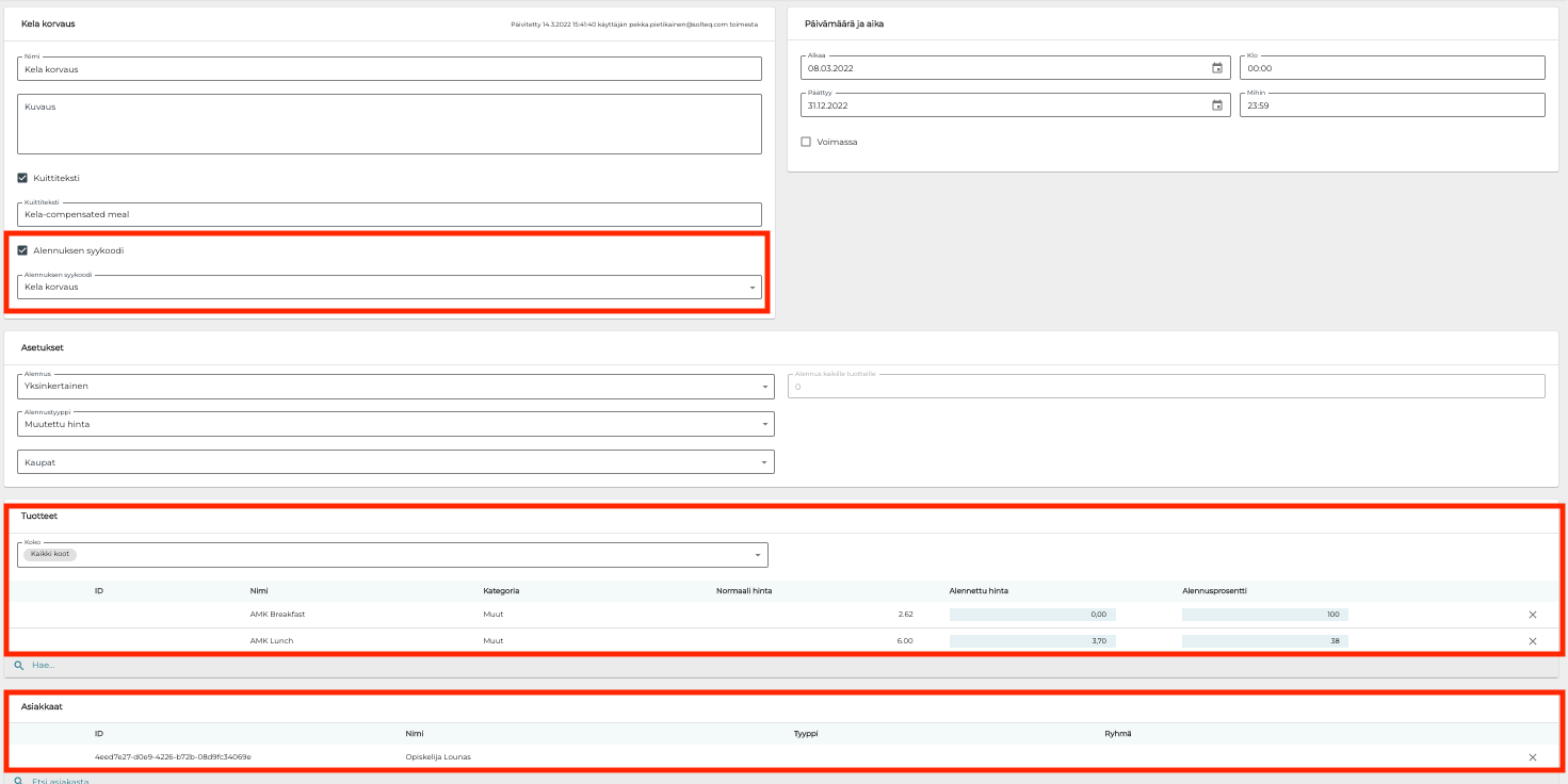 Luo uusi alennus tuetuille aterioille: